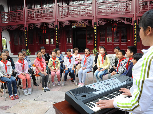 鄞州:云龙镇学生与村民一起在徐东埭文化礼堂学村歌