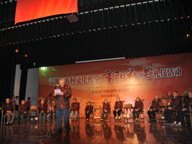 余姚:翁方村举行重阳敬老仪式之寿星代表致辞